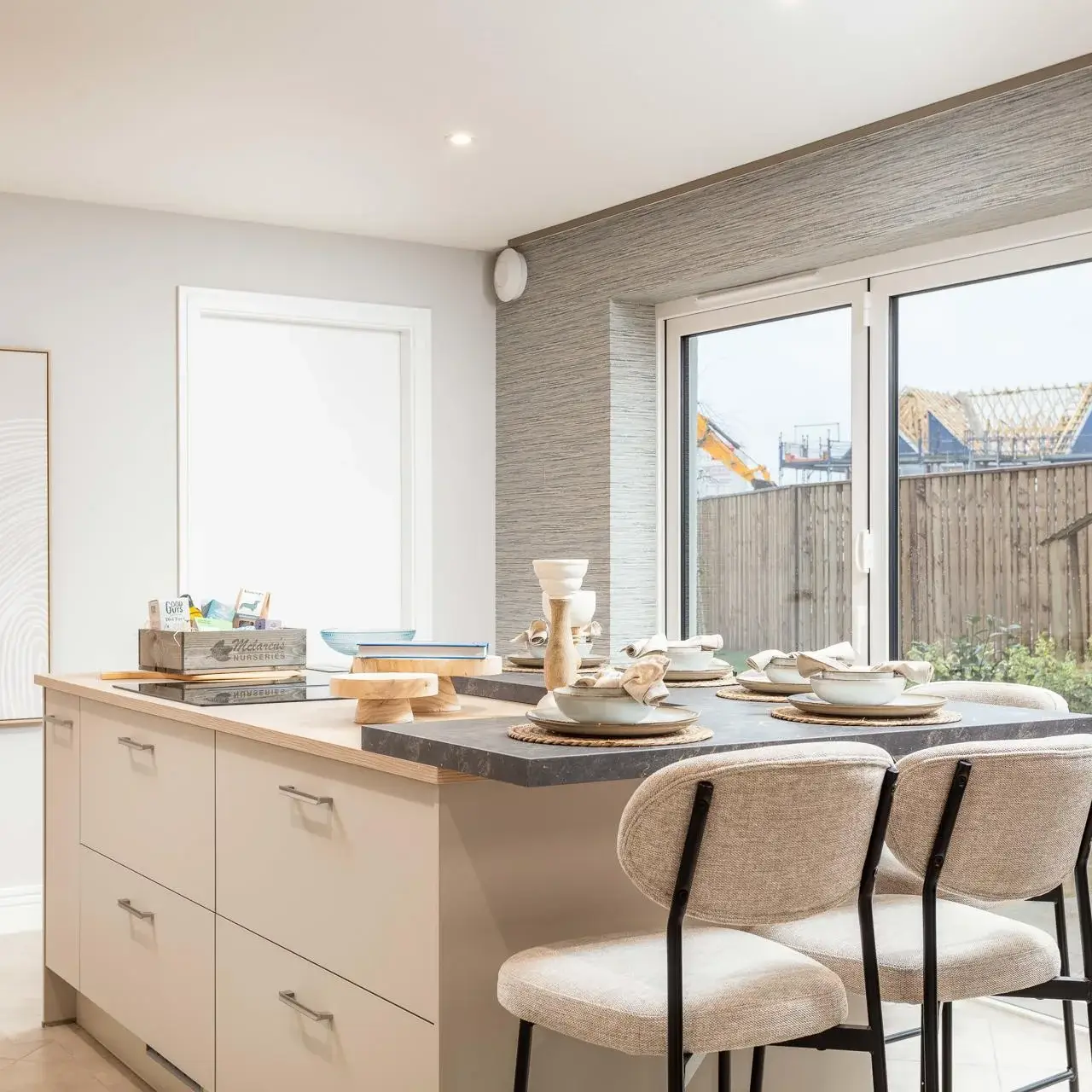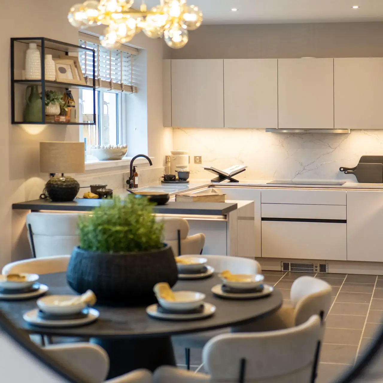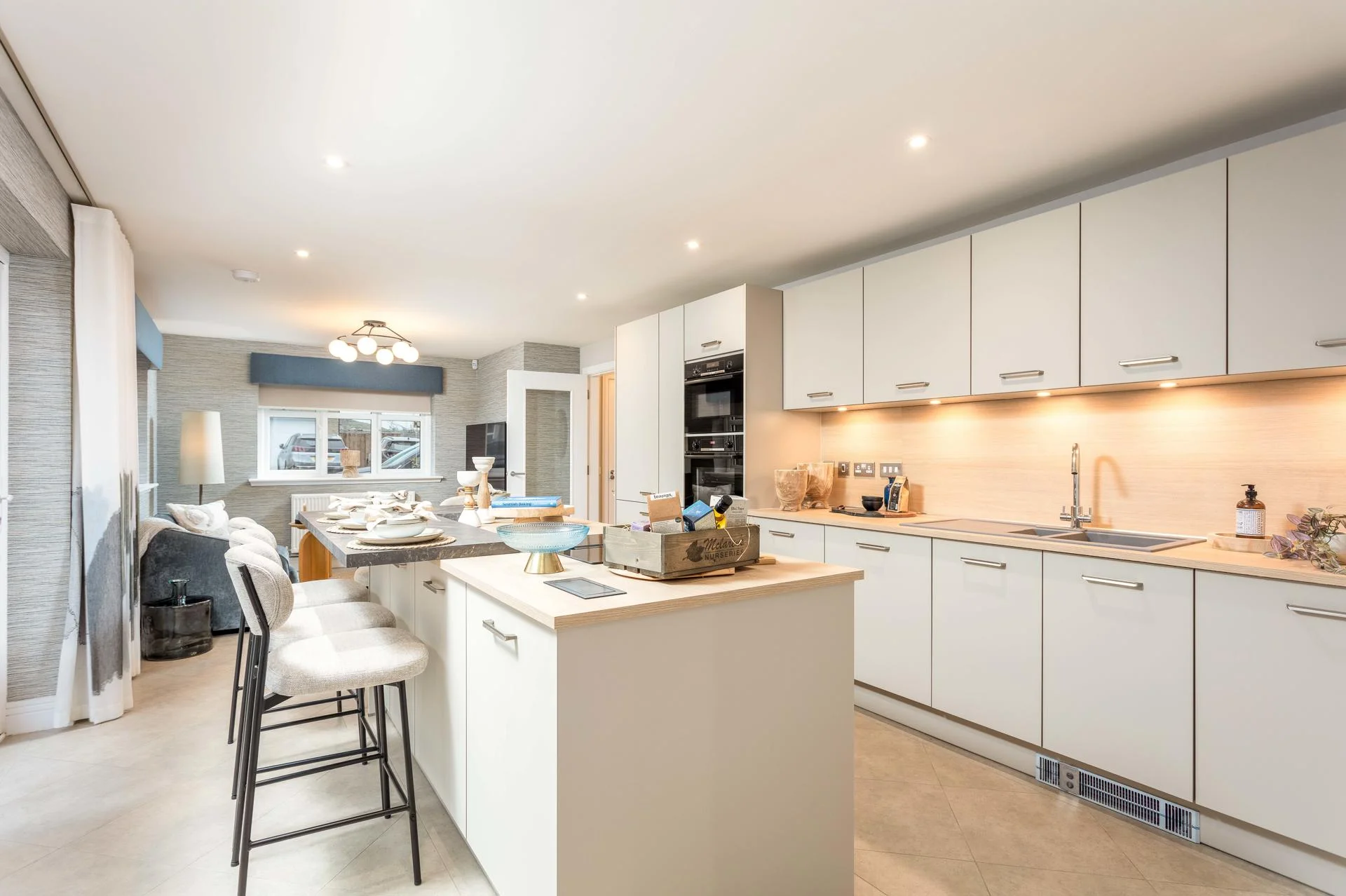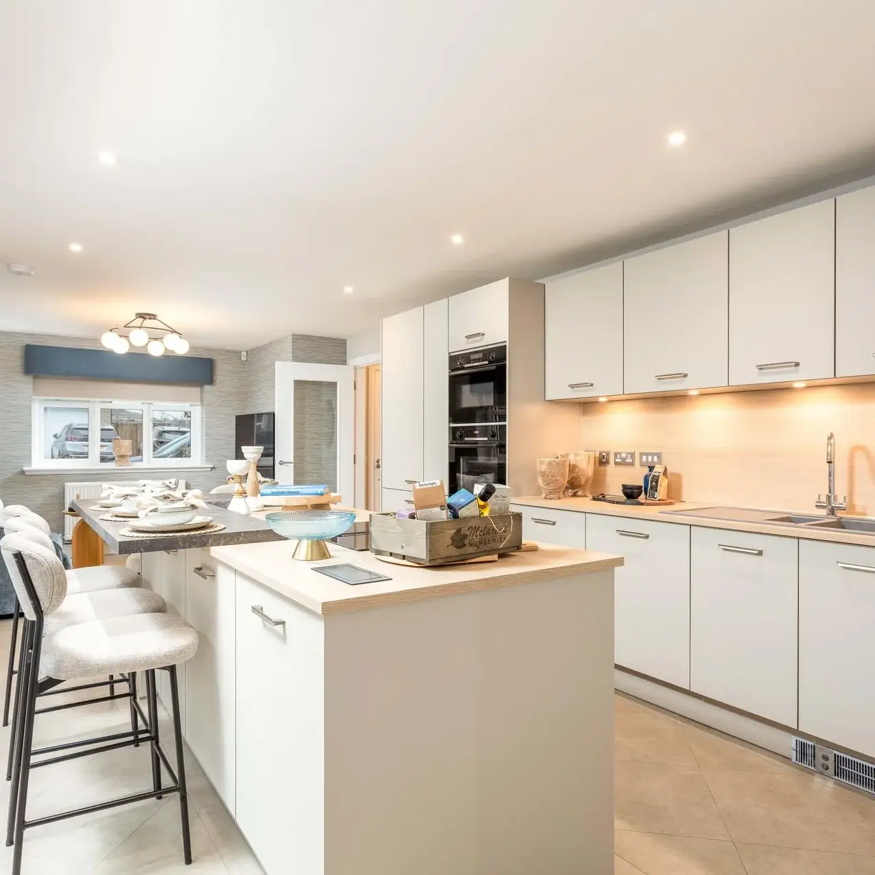 The Cleland and Darroch showhomes feature kitchen furniture from Impuls, presenting a contemporary, high-quality standard offering that delivers strong visual appeal and practicality at an accessible price point. The Kennedy showhome, by contrast, was fitted with handleless furniture from Nolte, our premier kitchen range, showcasing enhanced detailing, premium finishes, and advanced functionality. This contrast allows buyers to clearly understand both what is included as standard and how upgrades can further elevate their home.