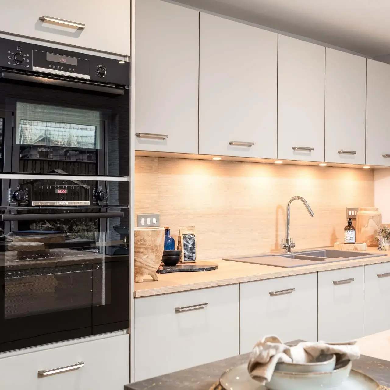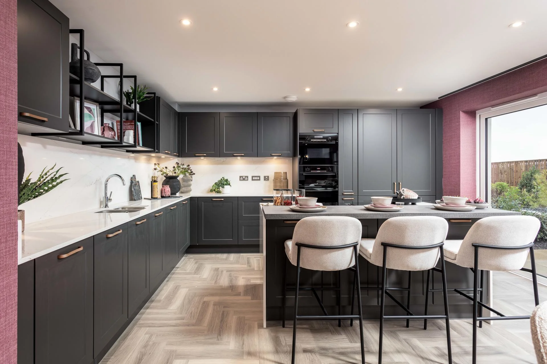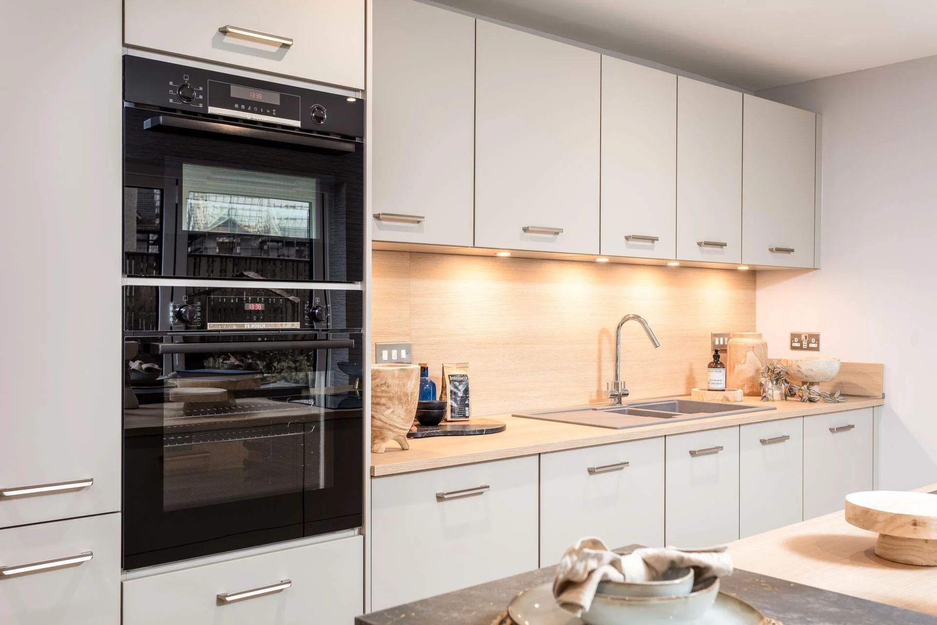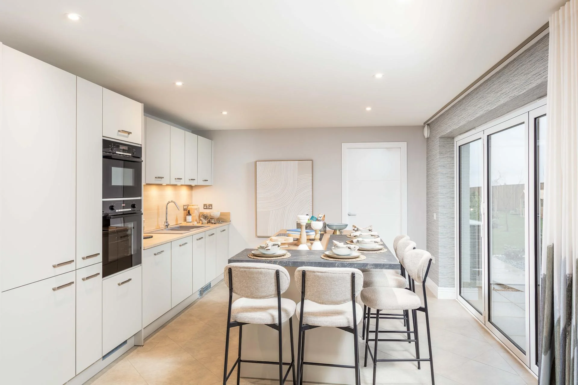 The Cleland and Darroch showhomes feature kitchen furniture from Impuls, presenting a contemporary, high-quality standard offering that delivers strong visual appeal and practicality at an accessible price point. The Kennedy showhome, by contrast, was fitted with handleless furniture from Nolte, our premier kitchen range, showcasing enhanced detailing, premium finishes, and advanced functionality. This contrast allows buyers to clearly understand both what is included as standard and how upgrades can further elevate their home.