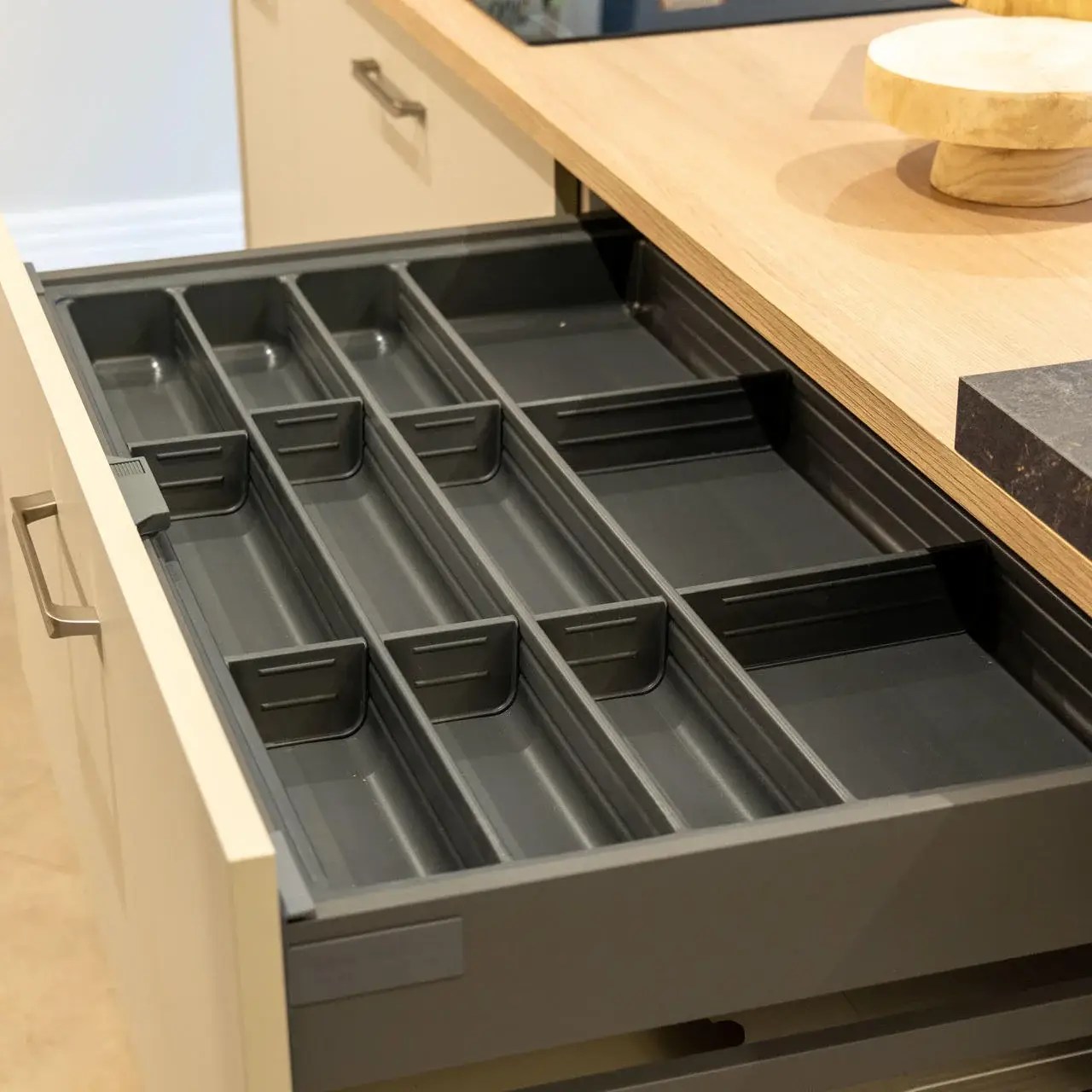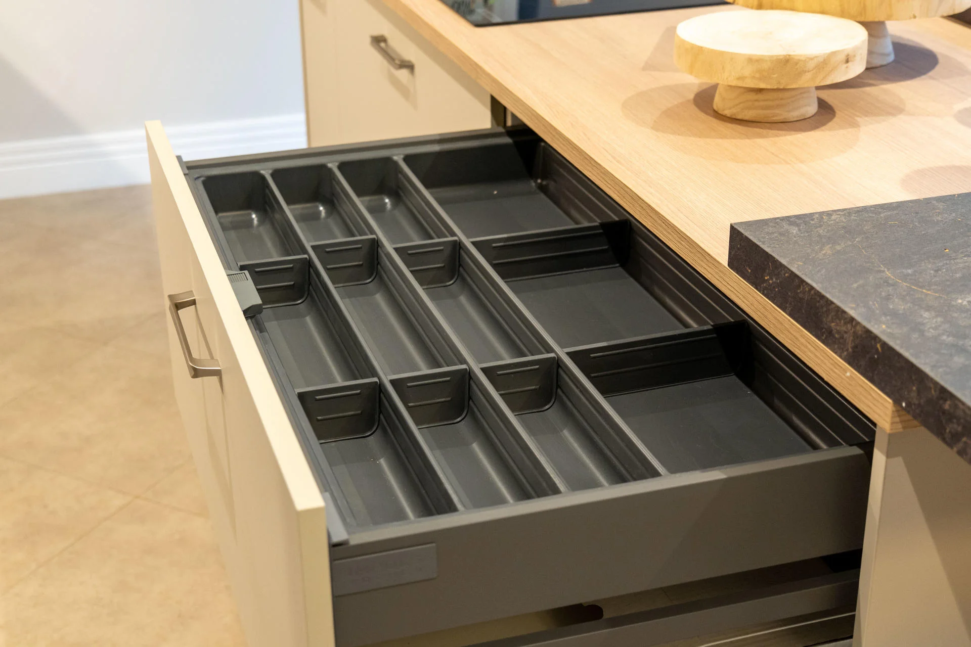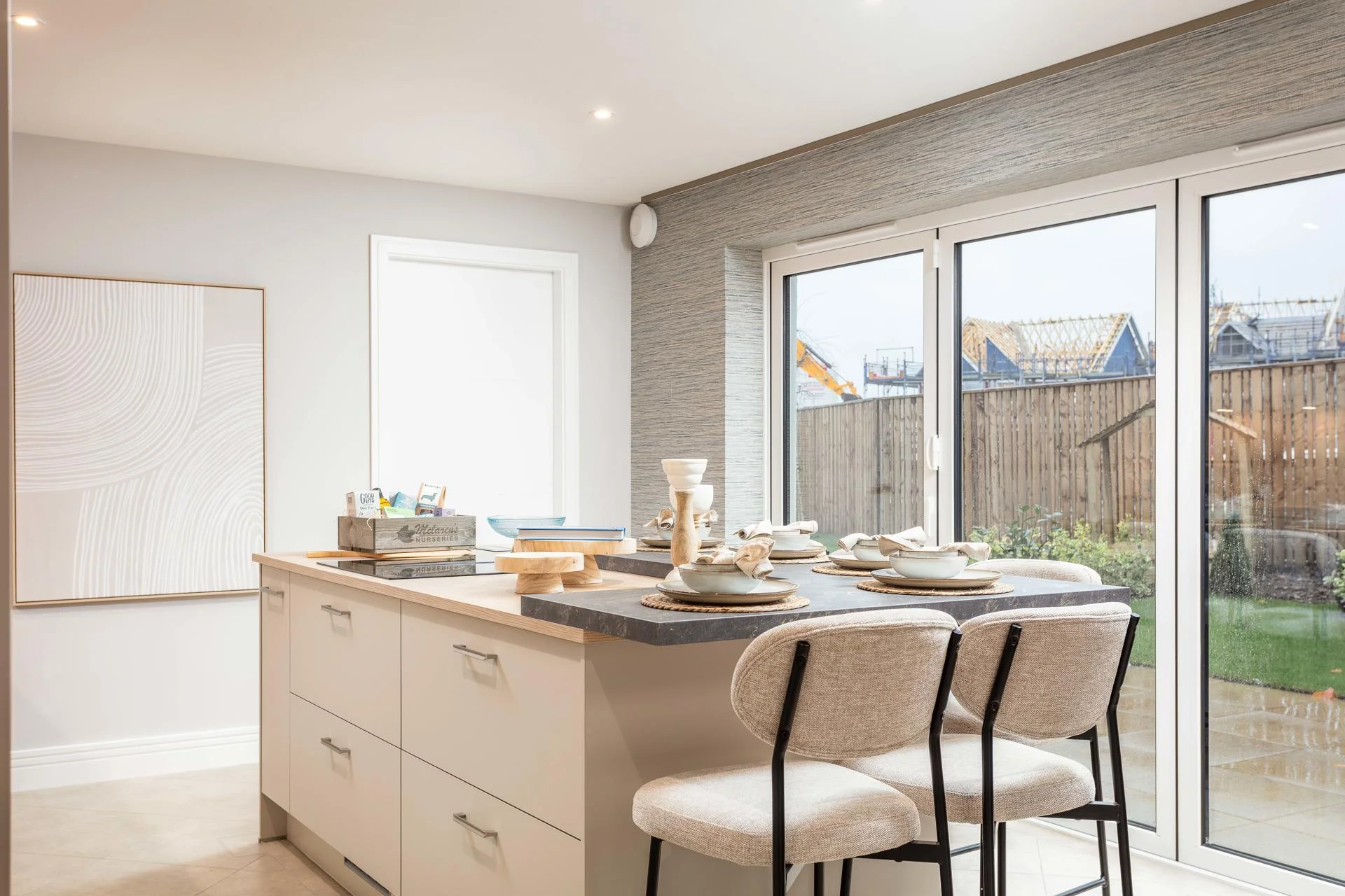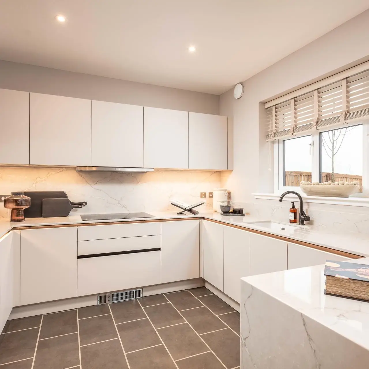 The Cleland and Darroch showhomes feature kitchen furniture from Impuls, presenting a contemporary, high-quality standard offering that delivers strong visual appeal and practicality at an accessible price point. The Kennedy showhome, by contrast, was fitted with handleless furniture from Nolte, our premier kitchen range, showcasing enhanced detailing, premium finishes, and advanced functionality. This contrast allows buyers to clearly understand both what is included as standard and how upgrades can further elevate their home.