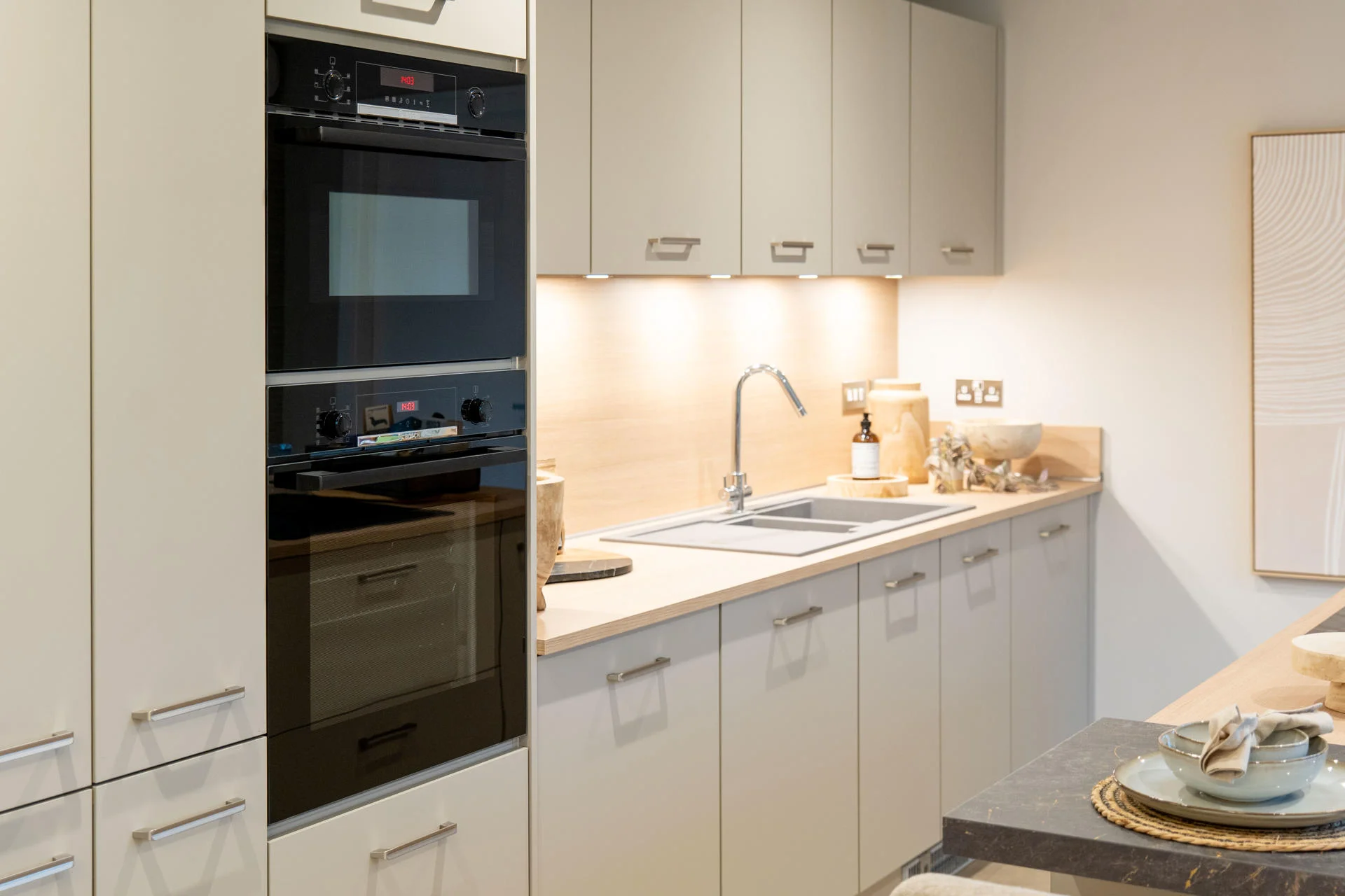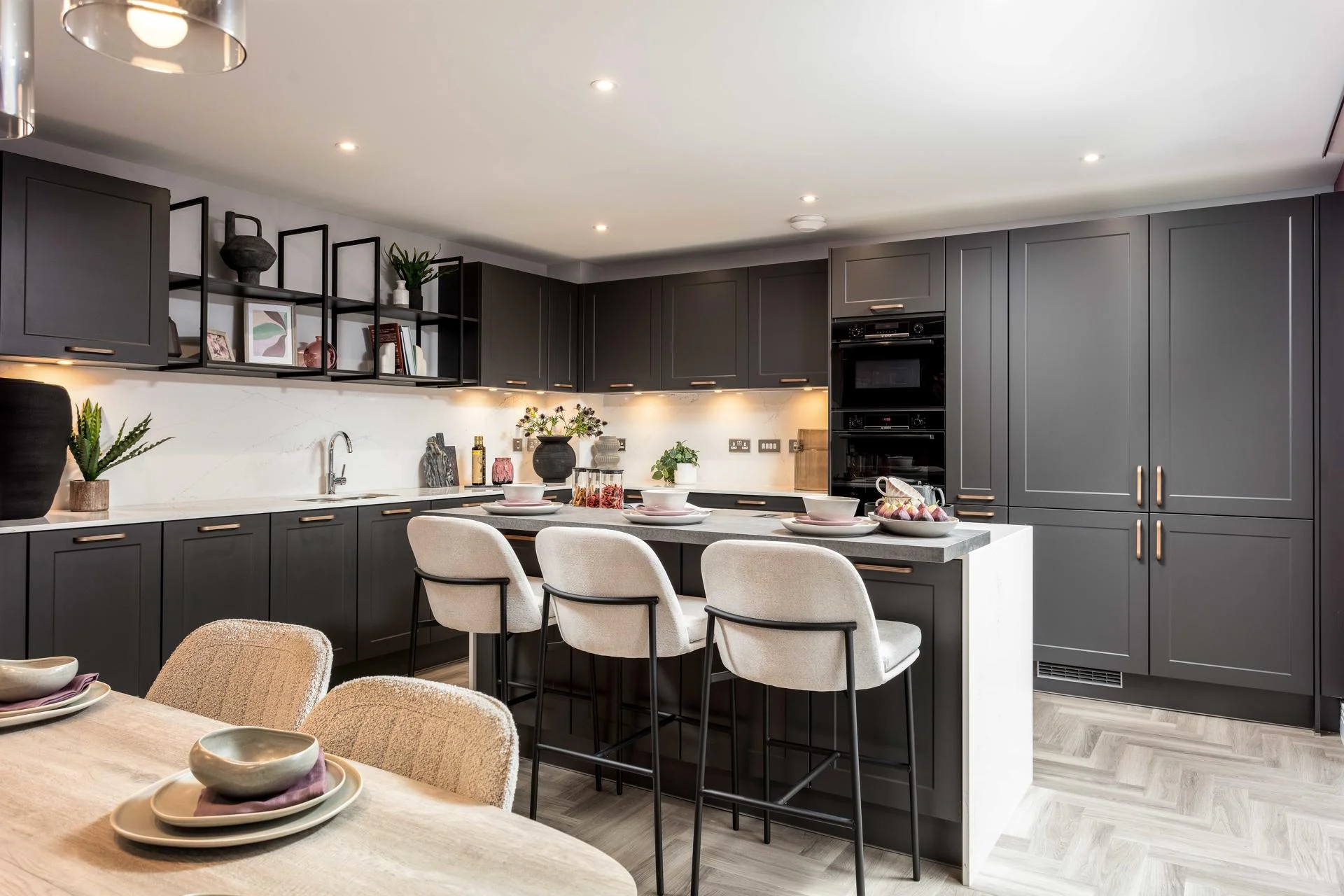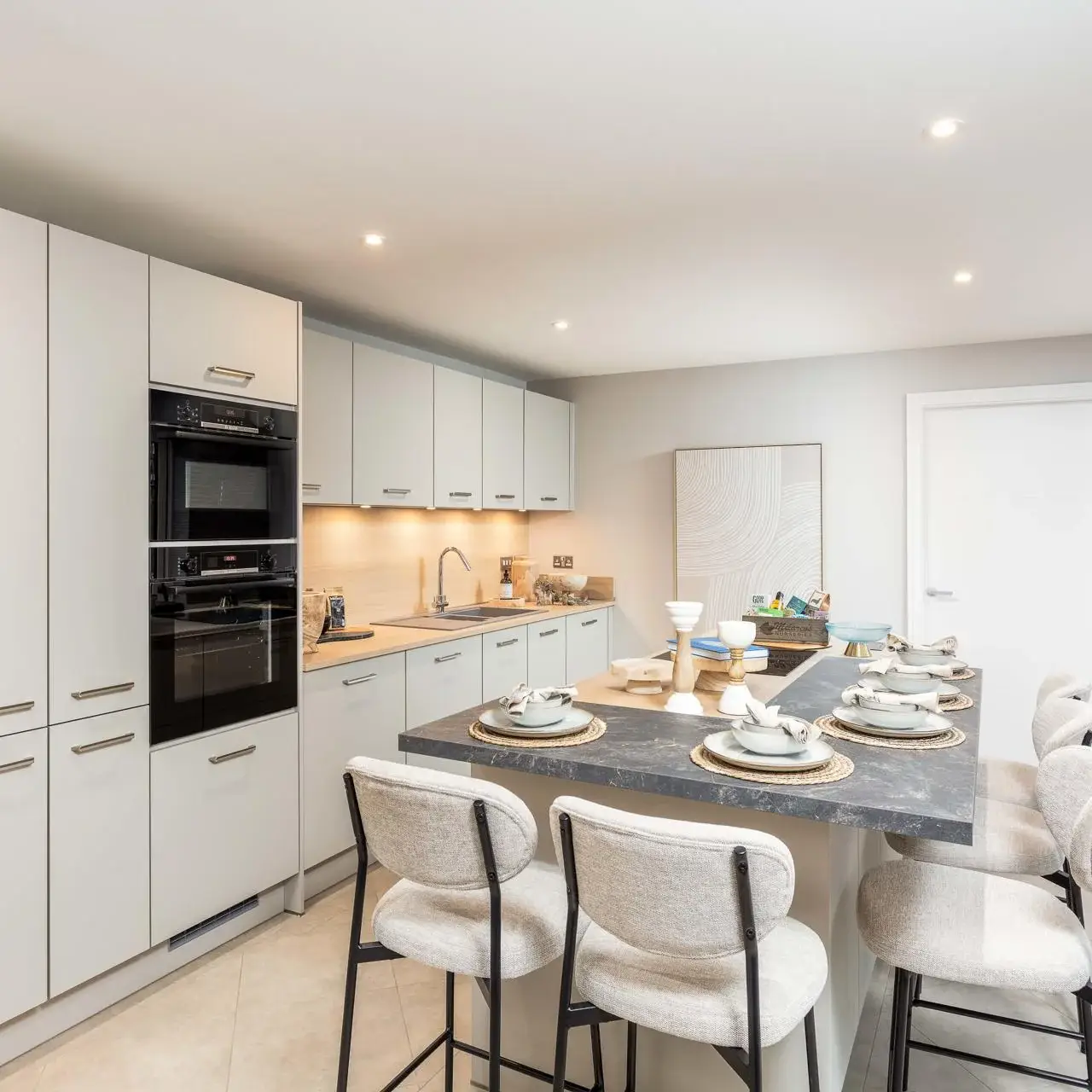 While each home reflects CALA’s strong architectural identity, we worked closely with the team to ensure that every showhome kitchen was distinct, using different finishes, colours, and specifications to appeal to a broad range of buyers and to demonstrate the flexibility available within the kitchen offering.