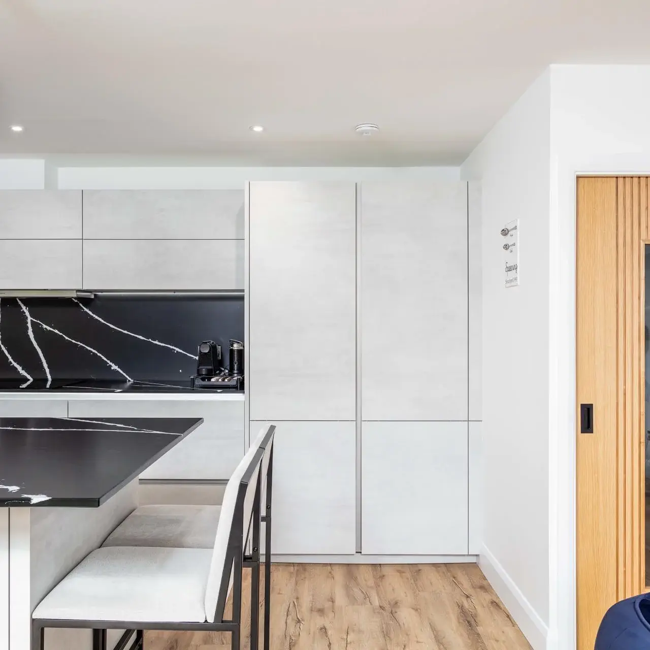 Creative Designs, the Ayr-based kitchen studio, were commissioned by a client in Kilmarnock to create a modern, elegant, and highly functional kitchen. The homeowners wanted a sleek, contemporary design that would make the most of the available space while incorporating premium finishes and cutting-edge features.