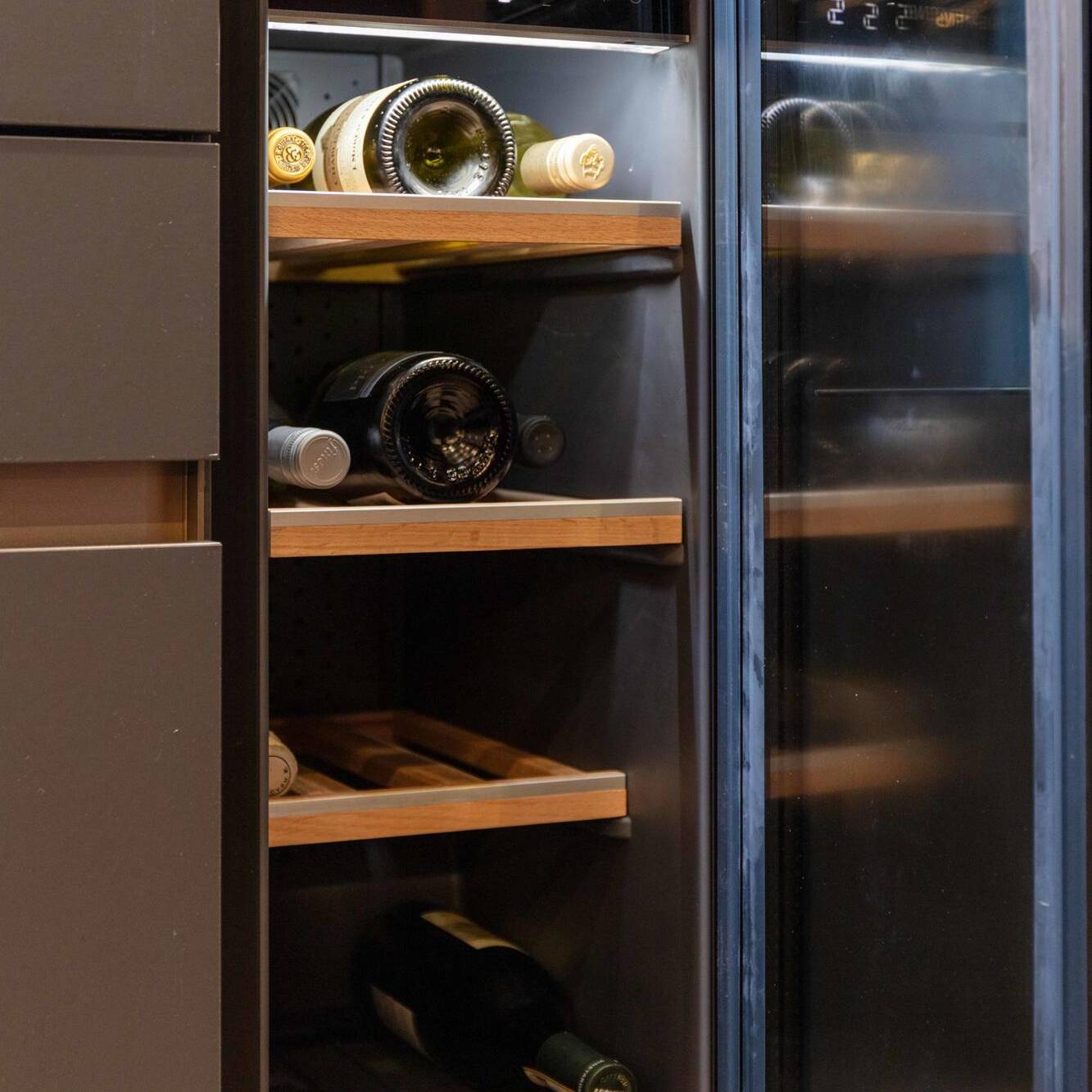 To meet the client’s needs, Creative Designs crafted a bespoke solution using a Nolte handleless kitchen for a clean, streamlined look. We incorporated Dekton worktops that combine durability with elegance, paired with integrated Nolte lighting to enhance the kitchen’s overall ambiance. Custom display cabinets were added to showcase the client’s collection, and the layout included a table/breakfast bar arrangement, creating a practical yet inviting space for daily use. With additional touches like a corner carousel unit and mirror splashbacks, every detail was carefully designed to maximize both form and function.